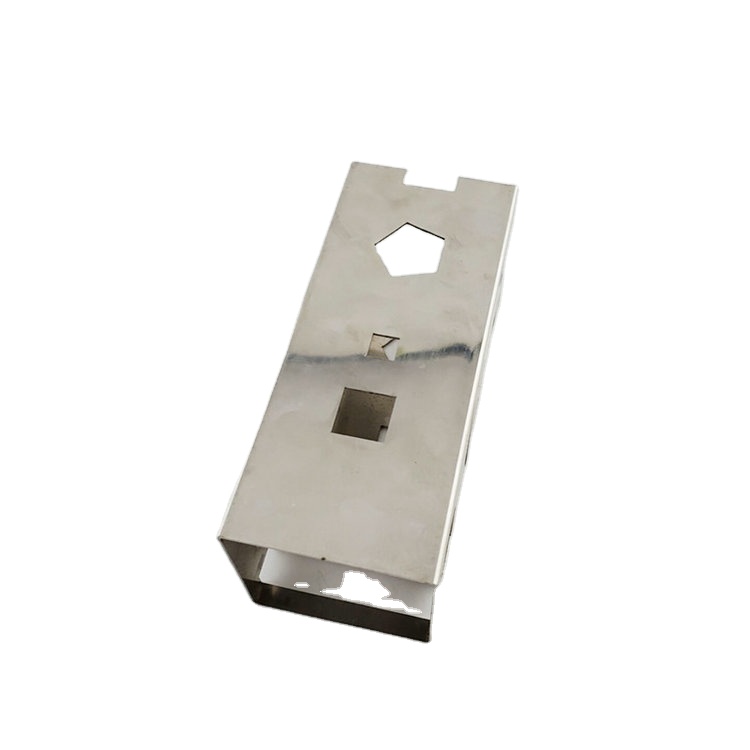 The bracket features a folded U-shaped design with precision-cut holes—including a hexagonal hole, square hole, and small notched cutout—enabling secure alignment and attachment with mating components. Advanced stamping and bending techniques ensure tight dimensional accuracy, smooth edges, and consistent structural rigidity, preventing deformation under heavy loads or vibration.